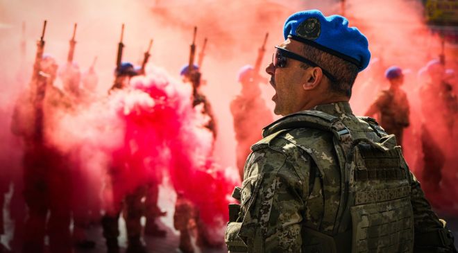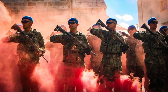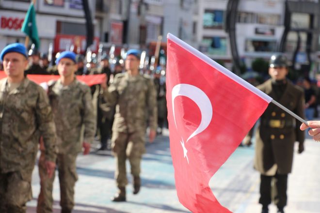 Törende, iç güvenlik harekatlarındaki üstün başarılarından dolayı Türkiye’nin çift sancaklı tek tugayı olan Bolu 2’nci Komando Tugay Komutanlığındaki komandoların geçişi renkli görüntülere sahne oldu. Sis bombaları altında yürüyen mavi bereliler törene katılan vatandaşlar tarafından dakikalarca alkışlandı. Komandoların marşlarla geçişi sırasında vatandaşlar da ellerinde Türk bayraklarıyla askerlere sevgi gösterilerinde bulundu. Mavi bereliler, marşlarıyla ve ayak sesleriyle caddeyi inletti.
