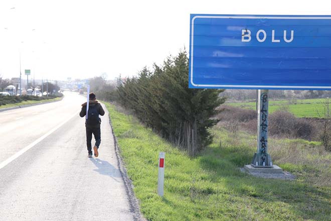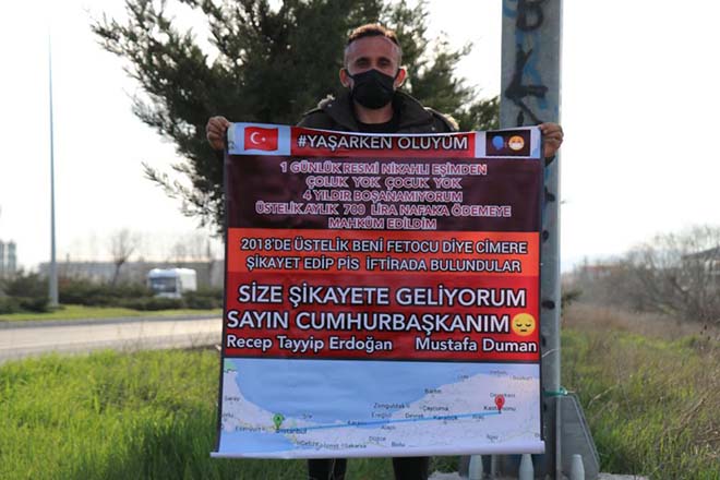 Edinilen bilgiye göre, Kastamonu'nun merkeze bağlı Pehlivan köyünde ikamet eden 32 yaşındaki Mustafa Duman, sosyal medyadan tanıştığı Ayşe ile iki yıllık birlikteliğin ardından 2017 yılının Ekim ayında evlendi. Eşinin yüzünü sadece nikâh günü görebilen Duman, ailesi ile birlikte İstanbul'a döndükten sonra bir daha haber alamadığı gerekçesiyle boşanma davası açtı. Davanın görüldüğü sırada aylık 700 TL nafaka ödemeye mahkûm edilen Duman, yaşadığı haksızlığı duyurmak için dün Kastamonu'dan İstanbul'a yürümeye başladı. Yaklaşık 273 kilometre yürüyerek Bolu’ya ulaşan Duman, hafta sonu sokağa çıkma yasağı nedeniyle vereceği molanın ardından Cumhurbaşkanı Recep Tayyip Erdoğan ile görüşmek için İstanbul’a yürümeye devam edecek.