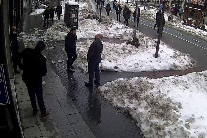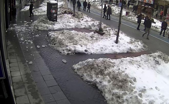 Bolu’da, geçtiğimiz haftalarda etkili olan kar yağışı ve ardından gelen dondurucu soğuklar sebebiyle binaların çatılarında kar birikintileri ve metrelerce uzunlukta buz kütleleri oluştu. Hava sıcaklıklarının yükselmesiyle birlikte biriken karlar ve buz kütleleri tehlike oluşturdu. İzzet Baysal Caddesi üzerinde bulunan 4 katlı binanın çatısında oluşan 1 metrelik buz kütlesi büyük bir gürültüyle yere düştü. Buz kütlesinin düştüğü sırada binanın altında bulunan 2 kişi buz kütlesinin altında kalmaktan son anda kurtuldu. Yere düşerek parçalara ayrılan kütlenin yakınlarına düştüğünü gören 2 kişi büyük korku yaşarken, o anlar bir iş yerinin güvenlik kamerasına anbean yansıdı. Buz kütlesinin düştüğü caddede esnaflık yapan Zafer Matyar, hava sıcaklığının yükselmesiyle çatı oluklarında oluşan buzların düşmeye başladığını belirterek, "Yaradan Allah işte, kimse yoktu o anda. Caddede bütün binalardan düşüyor" dedi.