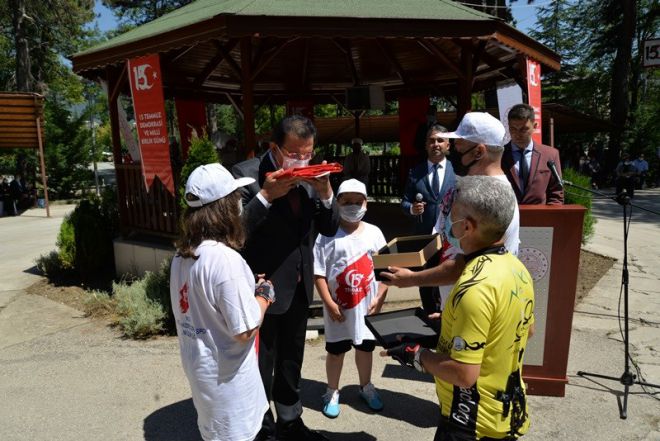 15 Temmuz işgal girişiminin 5’inci yıl dönümü dolayısıyla Garnizon Şehitliğinde düzenlenen program Aziz şehitlerimizin manevi huzurunda Saygı Duruşu’nda bulunulması ve İstiklal Marşı’nın okunması ile başladı. Program başta 15 Temmuz şehitlerimiz olmak üzere tüm şehitlerimiz için Kur’an-ı Kerim tilavetinin ardından İl Müftüsü Ali Rıza Tahiroğlu tarafından daha önceki günlerde okunan hatimlerin duaları yapıldı. Duaların akabinde Bolu Abant İzzet Baysal Üniversitesi ile Bolu İl Milli Eğitim Müdürlüğünün düzenlediği “Pedalları Şehitlerimiz İçin Çeviriyoruz” temalı Bisiklet Turu’na katılan sporcular, tur boyunca taşıdıkları Türk Bayrağını Bolu Valisi Ahmet Ümit’e takdim ettiler. Bolu Valisi Ahmet Ümit, protokol üyeleri, Şehitlerimizin aileleri ve Gazilerimiz, program kapsamında Şehitlikte dua ederek, şehit mezarlarına çiçek bıraktılar.