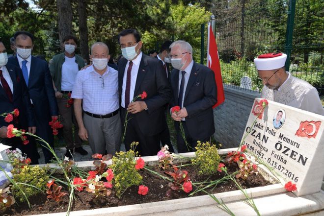 Bolu Valisi Ahmet Ümit ve beraberindekiler şehitlerimizin kabirlerini tek tek ziyaret ederek çiçek bıraktılar. Programa katılan şehit yakınları ve gazilerle de yakından ilgilenen Vali Ümit, “Tüm şehitlerimizin ruhları şâd, mekânları cennet, makamları âlî olsun” dedi.