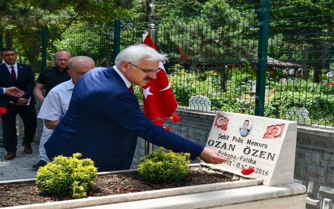 15 Temmuz işgal girişiminin 7’nci yıl dönümü dolayısıyla Garnizon Şehitliği’nde düzenlenen program aziz şehitlerimizin manevi huzurunda Saygı Duruşunda bulunulması ve İstiklal Marşı’nın okunması ile başladı. Programda başta 15 Temmuz şehitlerimiz olmak üzere bizlere bu toprakları vatan kılan tüm şehitlerimiz için Kur’an-ı Kerim tilavetinin okunmasının ardından İl Müftüsü Ali Rıza Tahiroğlu tarafından dua yapıldı. Program, Bolu ValisiErkan Kılıç, protokol üyeleri, şehitlerimizin aileleri ve gazilerimizin şehitlikte dua ederek şehit kabirlerine karanfil bırakmasıyla son buldu.
