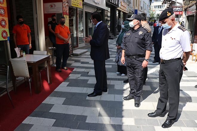Bolu’da, korona virüs salgınıyla mücadele kapsamında 676 ekip ve 2 bin 388 personelle il genelinde bulunan okul ve iş yerlerinde denetim yapıldı. Korona virüs denetimlerine katılan Bolu Valisi Ahmet Ümit, yeni eğitim öğretim yılında ilk kez yüz yüze eğitime başlayan öğrencilerle bir araya geldi. İzzet Baysal Ortaokulu’nda denetim yapan Vali Ümit, öğrencilerle de sohbet ederek tavsiyelerde bulundu. Okul denetiminin ardından Cumhuriyet Caddesi'ndeki iş yerlerini ziyaret eden Vali Ümit, iş yeri sahipleri ve çalışanlarını maske kullanımı ve hijyen konusunda bilgilendirdi. Ümit, ziyaret ettiği iş yerlerinde alınan tedbirler karşısında vatandaşlara teşekkür etti.