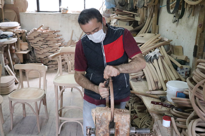 Tonet sandalye yapımının çok zahmetli bir iş olduğunu ve yetiştirecek elaman bulamadıklarını belirterek, “Burası 1958 yılında kuruldu. O günden beri aktif çalışıyor. Ben 27 yıllık ustasıyım. Şuanda bunu yapacak usta kalmadı. Yetiştirecek eleman da bulamıyoruz. Ben de ne zamana kadar yaparım bilmiyorum ama elimizden geldiği kadar yapacağız. Kereste halindeki ağacı alıyoruz. Genelde kayın ağacı kullanıyoruz. Başka ağaç kullanmıyoruz. Ben ebatlara göre kesiyorum. Tornada yuvarladıktan sonra büküyorum ve ardından işleme geçiyorum. Çok zahmetli bir iş. Dayanıklılığına 50 sene garanti veririm. Düzgün kullanıldıktan sonra, yağmur görmeyecek, rutubet görmeyecek. Sıkıntı olmaz” dedi.