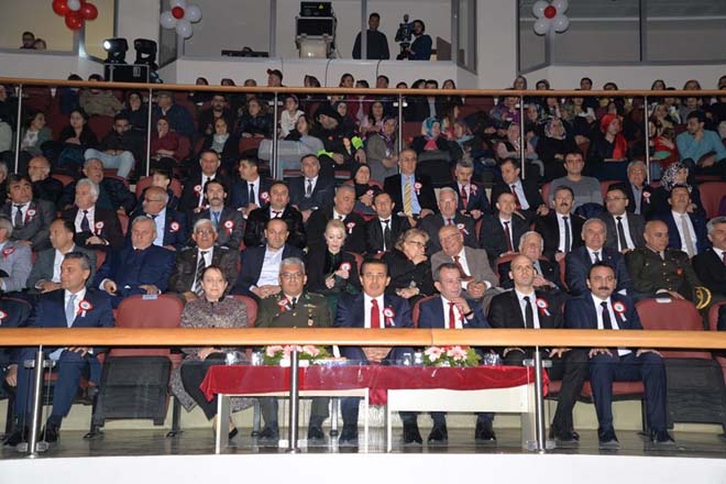 Anıt Park’taki törenin ardından Karaçayır Spor Salonu’nda yapılan törene Bolu Valisi Ahmet Ümit, Bolu Milletvekili Arzu Aydın, Garnizon Komutan Vekili Öğretmen Albay Hasan İmrağ, Bolu Belediye Başkanı Tanju Özcan, Cumhuriyet Başsavcısı Vekili Alperen Ertürk, Bolu İdare Mahkemesi Başkanı Turgut Delal, İl Emniyet Müdürü Armağan Adnan Erdoğan, İl Jandarma Komutanı Jandarma Albay Nadir Çelik, daire müdürleri, sivil toplum örgütü temsilcileri, öğrenciler, öğretmenler ve çok sayıda vatandaşımız katıldı.Belediye Bandosu eşliğinde Saygı Duruşu ve İstiklal Marşı'nın okunması ile başlayan program, İl Milli Eğitim Müdürü Yasin Tepe’nin günün anlam ve önemini belirten konuşması ile devam etti.
