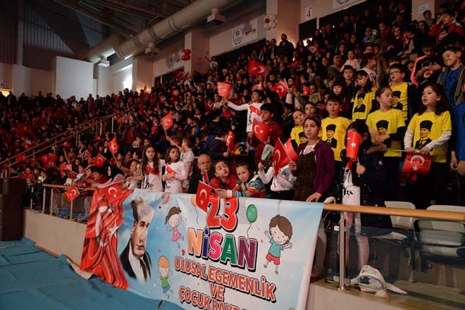 23 Nisan Ulusal Egemenlik ve Çocuk Bayramı kutlamalarını bu yıl hazırlayan Gazipaşa İlkokulu öğretmen ve öğrencilerinin yerlerini alması ile başladı. Büyük emeklerle hazırlanan törene okulun öğrenci ve öğretmenlerinin hazırladığı “Çocuklar Kurar Dünyayı” isimli koreografisi katılımcılardan büyük alkış aldı. Gösteride Milli Mücadele yıllarından Türkiye Büyük Millet Meclisi’nin açılışına kadar yaşanan süreç muhteşem bir koreografi ile izleyicilere aktarıldı. Törenin sonunda, etkinliği düzenleyen tüm öğretmen, idareci ve öğrenciler hep birlikte tepeden yağan balonlar, konfetiler eşliğinde Bolululara eşsiz bir kutlama yaşatmış oldular. Programın sonunda Bolu Valisi Ahmet Ümit ve protokol üyeleri, programı hazırlayan Gazipaşa İlkokulu öğrencilerini, öğretmenlerini ve idarecilerini tebrik ederek, onlarla hatıra fotoğrafı çektirdiler.