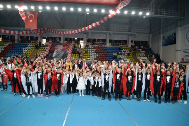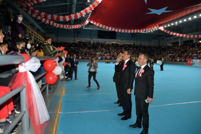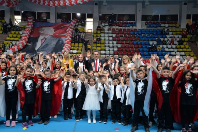23 Nisan Ulusal Egemenlik ve Çocuk Bayramı dolayısıyla İl Milli Eğitim Müdürü Dr. Cemil Sarıcı tarafından öğrencilerle birlikte Atatürk Anıtına çelenk sunumu yapıldı. Ardından Saygı Duruşu ve Bando eşliğinde İstiklal Marşı ile Bayraklar göndere çekildi.