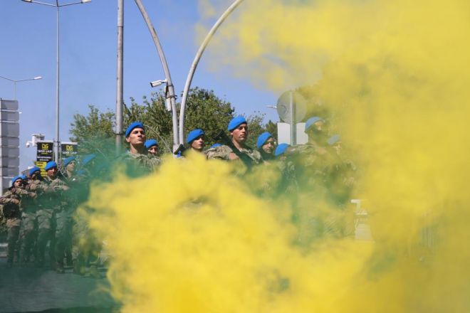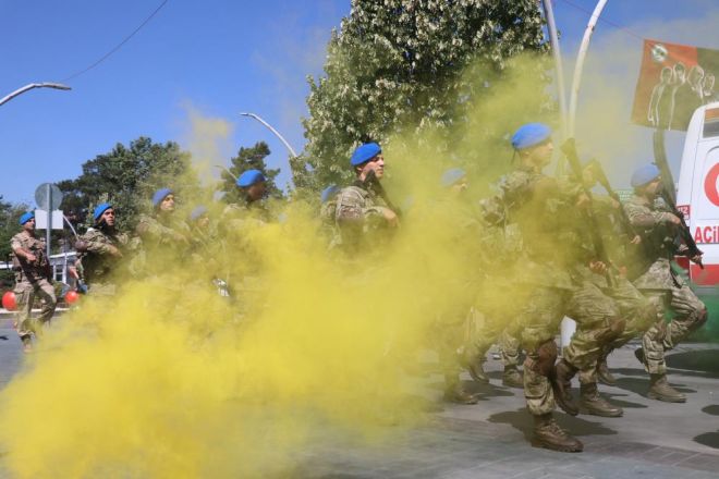 Törende, iç güvenlik harekatlarındaki üstün başarılarından dolayı Türkiye'nin çift sancaklı tek tugayı olan Bolu 2'inci Komando Tugay Komutanlığındaki komandoların geçişi renkli görüntülere sahne oldu. Sis bombaları altında yürüyen mavi bereliler törene katılan vatandaşlar tarafından dakikalarca alkışlandı. Komandoların marşlarla geçişi sırasında vatandaşlar da ellerinde Türk bayraklarıyla askerlere sevgi gösterilerinde bulundu. Mavi berelilerin marşlarla geçişi caddeyi inletti.