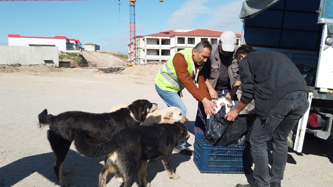 Bolu’da yeni tip koronavirüs (Kovid-19) tedbirleri kapsamında uygulanan 4 günlük sokağa çıkma kısıtlamasında sokak hayvanları sahipsiz bırakılmadı. Hayvanları korumaya yönelik Türkiye’nin ilk ‘Hayvan Hakları Komisyonu’nu kuran Bolu Belediyesi’ne bağlı Veteriner İşleri Müdürlüğü ekipleri, özel izinleri bulunan Hayvan Hakları Komisyonu Başkanı Cihan Tutal, Bolhayko ve Bolpati üyeleri ile birlikte sokak hayvanlarını aç ve susuz bırakmamak için mahallelere yiyecek bırakıyor. 43 mahalleyi her gün dolaşan ekipler ve hayvan severler, park ve sokaklara mama, yiyecek ve su bırakıp “can dostlar”ın beslenme ihtiyaçlarını karşılıyorlar.