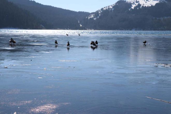 Bolu’nun en önemli turizm merkezlerinden birisi olan ve kent merkezine yaklaşık 42 kilometre uzaklıkta bulunan Abant Tabiat Parkı’nda hava sıcaklıklarının yükselmesiyle birlikte yazdan kalma günler yaşanıyor. Geçtiğimiz ay etkili kar yağışıyla beyaz örtüyle kaplanan Abant’ta güneşin yüzünü göstermesiyle yeniden yeşillik hakim oldu. Sokağa çıkma yasağı nedeniyle en sakin günlerini yaşayan tabiat parkında Abant Gölü’ne yansıyan güneşin havadan görüntüsü kartpostallık manzarayı ortaya çıkardı.