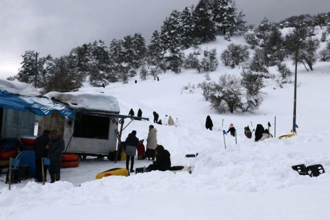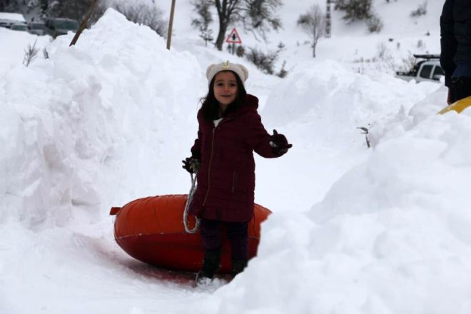Örencik köyü sakinleri ise bölgede çocuklar için kendi imkanlarıyla kızak pisti hazırladı. Köylülerin oluşturduğu alanda şambrellerle kayan çocuklar ve aileleri renkli görüntüler oluşturdu.