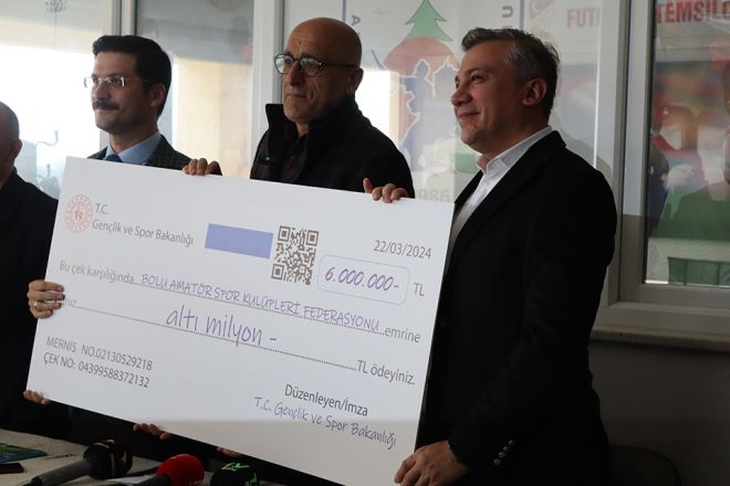 Yapılan konuşmaların ardından Amatör Spor Kulüpleri Federasyon Başkanı Cemalettin Metin’e 6 milyonluk ödeme çeki, AK Parti Bolu Belediye Başkan Adayı Doç. Dr. Muhammed Emin Demirkol ve İl Başkanı Suat Güner tarafından alkışlar eşliğinde takdim edildi.