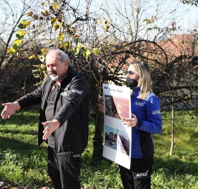 Yerinde inceleme gerçekleştirmenin öneminin altını çizen AFAD Deprem Dairesi Başkanı Dr. Murat Nurlu, “Bugün Kuzey Anadolu Fay Zonu’nu tanımak için yola çıktık. Bizim ülkemiz bir deprem ülkesi. Senede yaklaşık 25 bin deprem çözümü yapıyor AFAD Deprem Dairesi Başkanlığı. İlk durağımız Çamlıdere civarında oldu. Bir normal fayı gözledik orada. Ondan sonra da Gerede’ye geçtik. Gerede Kuzey Anadolu Fayının geçtiği ilçelerden birisi olduğu için önemli. Gerede’den Düzce’ye kadar uzanan bir hat var. Burada Kuzey Anadolu Fayı mevcut. Gerede’de 1944 yılında meydana gelen 7.1 büyüklüğündeki depremin yüzey kırıklıklarına, oluşturmuş olduğu küçük göllere baktık. Daha sonra Kaynaşlı’ya geldik. Kaynaşlı’da 12 Kasım 1999 Düzce Depremi’nin etkilerinin olduğu alanları inceledik. Şimdi de yine Düzce’nin Gölyaka ilçesi Gölormanı Köyü’nde hasar görmüş evleri inceledik. Sonuç olarak Kuzey Anadolu Fay Zonu’nun özellikle Düzce Depremi’ne neden olan yüzey kırığı üzerinde incelemelerimizi gerçekleştirdik” değerlendirmesinde bulundu.