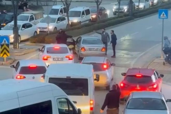Olay, Borazanlar Mahallesi’nde Mehmet Akif Ersoy Bulvarı üzerinde meydana geldi. Edinilen bilgiye göre, bir vatandaş eşi ve bebek arabasıyla birlikte yaya geçidinden yolun karşısına geçmek istedi. Yaya geçidine hızlı geldiği iddia edilen bir otomobil sürücüsü ile yaya geçidindeki vatandaş tartıştı. Tartışma kısa sürede alevlenerek kavgaya dönüştü. Taraflar arasında çıkan kavgada yumruklar havada uçuştu. Akşam saatlerinde trafik akışını durduran kavga nedeniyle uzun araç kuyrukları oluştu. Vatandaşların araya girmesiyle taraflar sakinleştirildi.