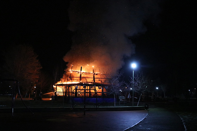 Yangın, saat 20.00 sıralarından Aşağısoku Mahallesi’nde bulunan Atatürk Orman Parkı’nda meydana geldi. Edinilen bilgiye göre, park içerisinde bulunan ve tadilatta olduğu öğrenilen Abdurrahman Avşar’a ait kafeteryada henüz belirlenemeyen bir nedenle yangın çıktı. Rüzgarın da etkisiyle alevlerin kafeteryanın tamamını sardığını gören vatandaşlar durumu itfaiye ve polis ekiplerine bildirdi. Olay yerine gelen polis ekipleri yanan kafeteryadaki patlamalara karşı geniş güvenlik önlemleri alarak park içerisinde bulunan vatandaşları yangın bölgesinden uzaklaştırdı. Bolu Belediyesi İtfaiye Müdürlüğü ekipleri yaklaşık 1 saatlik çalışma sonucunda yangını söndürmeyi başardı. Yangında kafeterya kullanılmaz hale gelirken, herhangi bir can kaybı yaşanmadı.