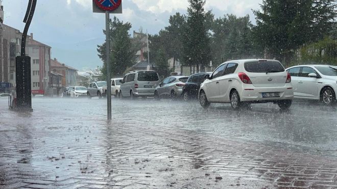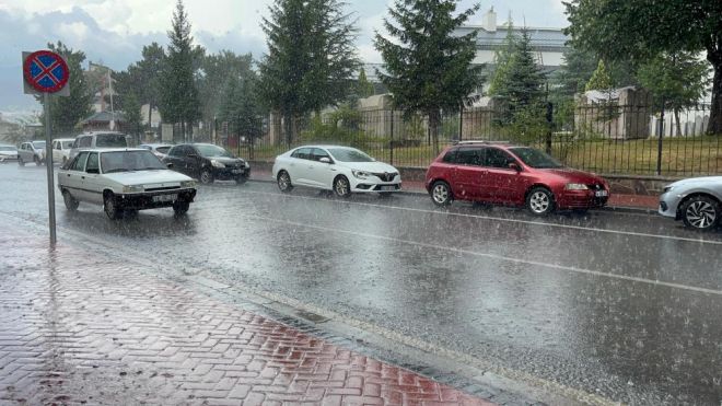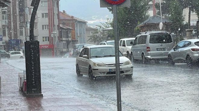 Bolu’da sabah saatlerinde güneşli olan hava öğleden sonra yerini sağanağa bıraktı. Aniden bastıran sağanak yağış nedeniyle birçok ara sokak adeta göle döndü. Yağmur yağışına hazırlıksız yakalanan vatandaşlar saçak altlarında yağmurun dinmesini bekledi. Hava sıcaklığının 26 derece olduğu şehirde, yağış etkisini kısa sürede kaybetti.