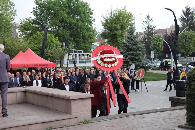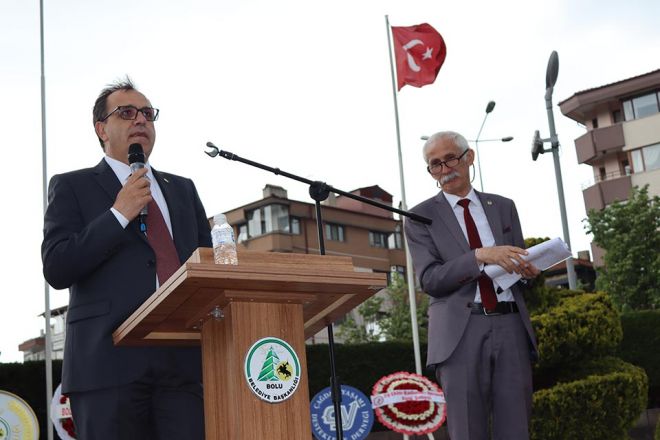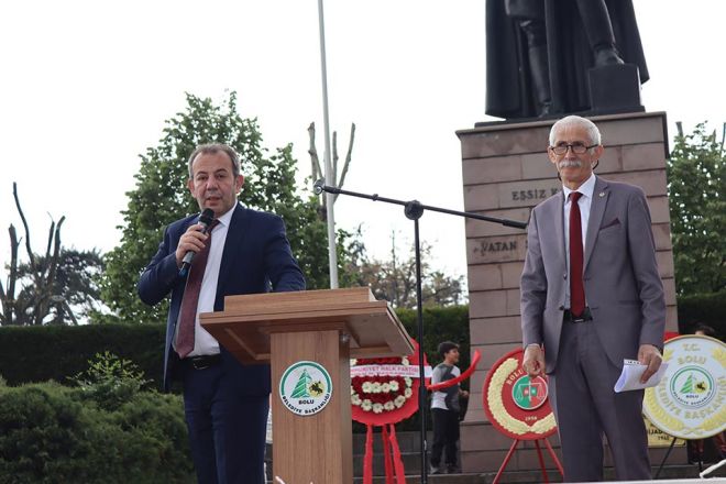 Anıtpark’ta yapılan törende ilk olarak Bolu belediye Başkanı Tanju Özcan konuştu. Başkan Özcan, 19 Mayıs Atatürk’ü Anma Gençlik ve Spor bayramını kutlayarak sözlerine başladı. Başkan Özcan yaptığı konuşmada kısaca şu ifadelere yer verdi; “Cumhuriyetimizin 2.asrına başlarken önümüzdeki pazar gerçek bir Atatürkçüyü ve gerçek bir Cumhuriyet evladını Cumhurbaşkanı olarak Ankara’ya göndermemiz gerekiyor. Yoksa partimizin ve ülkemizin kurucusu Gazi Mustafa Kemal Atatürk’ün inanın kemiklerini sızlatırız. Maalesef ilk turda biz bu işi bitiremedik. Bitirmemiz gerekiyordu. Önümüzdeki Pazar günü hiçbir müşahidimiz, hiçbir sandık görevlimiz hiçbir bahanenin arkasına sığınmadan ve bu seçimde görev almayan herkesi ben 28 Mayıs’ta sandık başına davet ediyorum. Oy kullanan seçmenleri de oy kullandıkları sandıklar açılırken o sandıkları görmek için sandık başına davet ediyorum. Oy çalmaya niyetlenenlerin bu sefer hevesleri kursaklarında kalır inşallah. Bizim Sayın genel başkanımızın söylediği gibi herhangi bir terör örgütüyle ne gizli bir görüşmemiz oldu ne de açık bir görüşmemiz oldu. Biz bu devleti kuran partiyiz. Bizim PKK ile işimiz olmaz. Bizim FETÖ ile ilişkimiz olmaz. Hiç olmadı. Bizim Hizbullah denen yapıyla işimiz hiç olmadı, olmayacakta… Bu devleti üniter olarak kurduk, üniter yapıda da yaşatacağız. Bizim hiçbir terör örgütüne verilmiş bir sözümüz yok. Önümüzdeki seçimde; çaldırmadığımız sürece kazanacağız. Bir tek fire vermememiz lazım. Moralinizi sakın bozmayın. Yakın çevrenizde sandığa gitmemiş bir tek insan bırakmayın. Lütfen gereğini yapınız. Bayramımız kutlu olsun.”