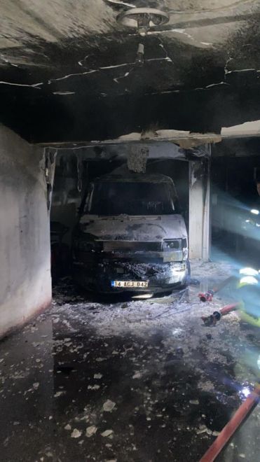 Yangın, Kültür Mahallesi Emin Aldemir Sokak’ta meydana geldi. Edinilen bilgiye göre, apartmanın garajında henüz bilinmeyen bir nedenle yangın çıktı. Garajda park halinde bulunan Mustafa K’ya ait 14 ACJ 042 plakalı Volkswagen marka minibüse alevler sıçradı. Bir anda alev topuna dönen minibüsten yükselen yangın, aracın yanında park halinde duran Aysel Y.’ye ait olan 14 AB 547 plakalı Range Rover marka cipe de sıçradı. Yangın nedeniyle apartman dumanlar altında kaldı. Yangını fark eden vatandaşlar durumu 112 Acil Çağrı Merkezi’ne bildirdi. İhbar üzerine olay yerine itfaiye, sağlık ve polis ekipleri sevk edildi. Yangının dumanından etkilenen 8 kişi mahsur kaldıkları apartmandan ekipler tarafından kurtarıldı. Dumandan etkilenen vatandaşlara sağlık ekipleri ambulans içerisinde müdahalede bulundu. Olay yerine gelen itfaiye ekiplerinin müdahalesiyle yangın kısa sürede söndürüldü. Yangında, minibüs kullanılamaz hale gelirken, cipte ise maddi hasar meydana geldi. Yangının çıkış nedeniyle ilgili inceleme başlatıldı.