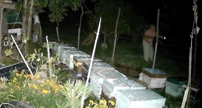 Edinilen bilgiye göre, Kıbrıscık’ın Deveören köyünde yaşayan arıcılık yapan Erhamin Koç, arı kovanlarındaki balları ayılardan korumak için kovanların etrafını elektrikli tellerle çevirdi. Gece saatlerinde orman içinden gelen 3 ayı ağaçların arasından çıkarak kovanlara yaklaşmak istedi. Koç’un arı kovanlarını korumak için aldığı elektrikli tel önlemi sayesinde ayılar kovanların bulunduğu yere giremedi. Tel sistemi, balları yemeye gelen ayıları geri püskürttü. 3 ayı tellerden kovanlara yaklaşamayınca ormana doğru geri giderken, o anlar güvenlik kameralarına yansıdı.
