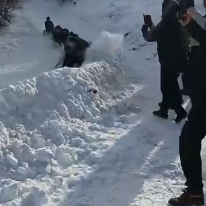 Bolu merkeze 25 kilometre uzaklıktaki Ömerler köyünde vatandaşlar, virajlı ve rampası dik alanı kayak pistine çevirdi. Alanda kayak keyfi yapan 10 kişilik bir grup şambrelleri arka arkaya dizerek kaymak istedi. Rampadan aşağı kayan grup, virajı alamayınca pistin yanındaki çukura uçtu. Vatandaşların doyasıya eğlendiği o anlar cep telefonu kamerasına yansıdı.