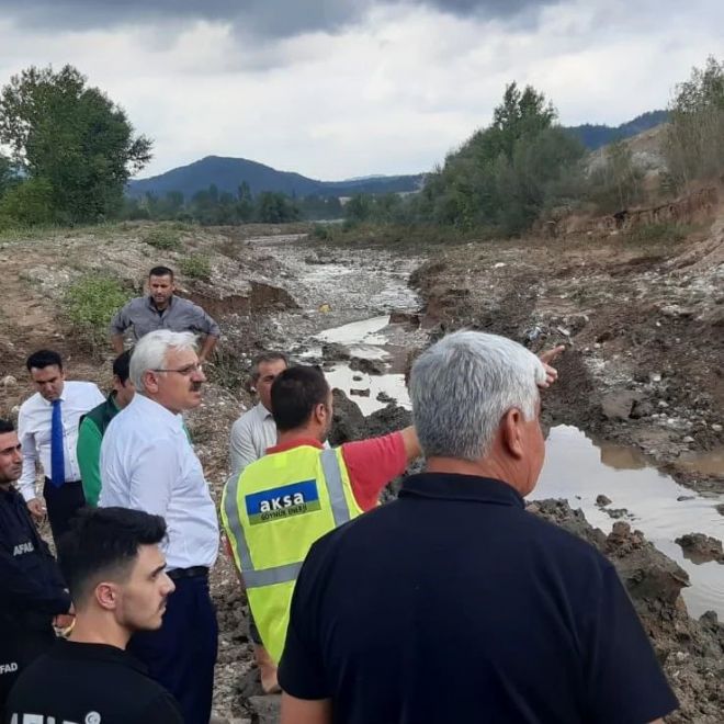 Bolu’nun Göynük ilçesinde aşırı yağmur etkili oldu. Yağış nedeniyle debisi yükselen dereler taştı. Göynük ilçesine bağlı Himmetoğlu köyü, Sarıcalar köyü ve Kürnüç-Kayabaşı köy yolunda ve tarlalarda hasar meydana geldi. Çiftçilerin dışarıda bulunan samanları da yağıştan nasibini alarak kullanılamaz hale geldi. Yağışın etkili olduğu Himmetoğlu köyü, Sarıcalar köyü ve Kürnüç-Kayabaşı köyüne Bolu Valisi Erkan Kılıç, gitti. Yetkililerden bilgi alan Vali Kılıç, köylülere geçmiş olsun dileklerinde bulundu. Bolu İl Tarım ve Orman Müdürlüğü yetkilileri de çiftçilerin hasarını tespit etmek için çalışmalara başladı.