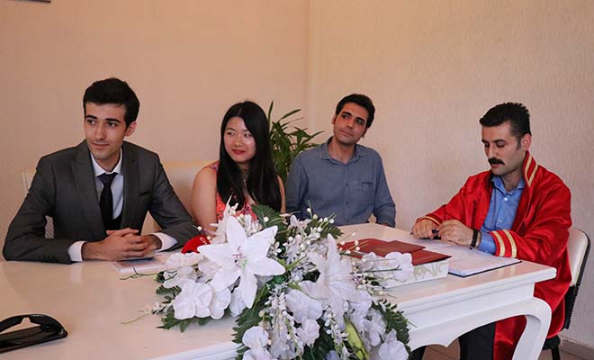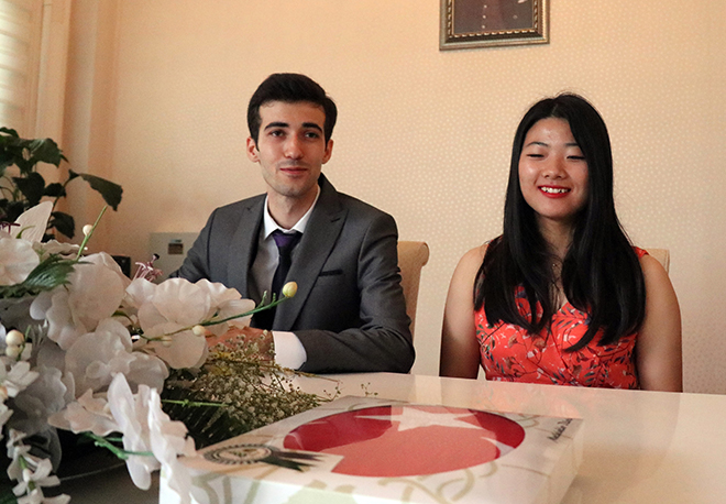 Bolu’da ailesiyle birlikte yaşayan Ahmet Serhat Süngü isimli genç, 2 yıl önce İstanbul Üniversitesi Siyasal Bilgiler Fakültesi'nden mezun olduktan sonra dil öğrenmek için Çin’e gitti. Süngü, Çin’de bir restoranda yemek yediği sırada aynı restoranda bulunan Ji Wang ile tanışarak arkadaş oldu. 1 yıldan fazla arkadaşlık yapan Wang ile Süngü, birbirlerine aşık olarak evlenmeye karar verdi. Türkiye’de evlilik işlemleri tamamlanan Wang ile Süngü’nün, Bolu Belediyesi Nikâh Salonu’nda nikahlar kıyıldı. Wang’ın ailesinin katılamadığı nikâh töreninde, nikah memurunun soruları tercüman aracılığıyla Türkçe’ye çevrilerek aktarıldı. Nikâhın ardından evlilik cüzdanını alan Wang, Süngü’nün annesinin elini öptü. Nikâh işleminin ardından Ahmet Serhat Süngü, “1 yılı aşkın Çin'de birlikteliğimiz oldu. Daha sonra bugün bu birlikteliğimizi evlilikle perçinledik. Şu an için Türkiye'de yaşayacağız. Daha sonrası için Çin'de mi olur, Türkiye'de mi olur; bilmiyoruz. Yaşayıp, göreceğiz” dedi. Çin'deki düğün adetlerini anlatan Wang ise, "Çin'de kız almaya gidildiği zaman kapıda çok para vermek gerekiyor. Kapının açılması için çok fazla para verilmesi gerekiyor. Evlenmeden önce çok fazla misafir gelir, onları ağırlarsın. Bizim aile bağlarımız geleneklerimiz Türkiye ile çok benziyor” şeklinde konuştu. Nikahın ardından akşam saatlerinde çiftin düğünü Karaçayır Parkı’nda yapıldı. Müzik eşliğinde düğün alanına gelen çift dans ettikten sonra oyun havaları eşliğinde doyasıya eğlendiler.