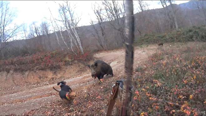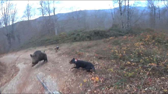 Edinilen bilgiye göre, hafta sonu tatilinde ormanlık alanda köpekleriyle birlikte yaban domuzu avına çıkan Ahmet Çoban isimli vatandaş, izini sürdüğü yaban domuzunu karşısında görünce tüfeğiyle ateş etti. Kurşunların isabet etmesine rağmen ayakta kalan yaban domuzu, hızla koşarak Çoban’a saldırdı. Yaban domuzundan kaçmak istediği sırada yere düşen Ahmet Çoban, yanında bulunan tabancayı çıkararak yaban domuzunu öldürdü. Köpeklerinin de yardımıyla yaban domuzunun saldırısından yara almadan kurtulan Ahmet Çoban’ın yaşadığı korku dolu anlar kask kamerasına yansıdı. Görüntülerde, domuz saldırısından kurtulan Ahmet Çoban’ın, “Tabanca olmasa gitmiştik. Az kalsın beni biçiyordu” ifadeleri yer aldı.