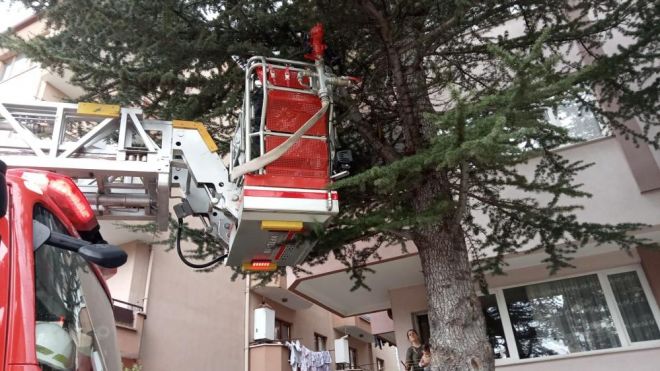 Olay, Bahçelievler Mahallesi Leylak Sokak üzerinde bulunan çam ağacında meydana geldi. Edinilen bilgiye göre, bir apartmanın balkon kısmına yakın olan çam ağacında kuşun mahsur kaldığı fark edildi. Kuşun ayaklarına ip dolandığını gören apartman sakinleri durumu itfaiye ekiplerine bildirdi. Olay yerine gelen itfaiye ekipleri, ayaklarına ip dolanarak mahsur kalan kuşu bulunduğu yerden kurtardı. Kurtarılan kuş doğaya salındı.