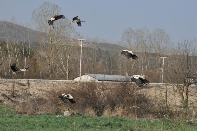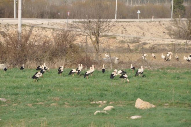 Her yıl baharla birlikte Bolu ve çevresini mesken tutan leylekler, havaların soğumasıyla birlikte göç ettikleri sıcak bölgelerden geri dönmeye başladı. Mudurnu ilçesinde farklı noktalarda elektrik direkleri üzerlerindeki yuvalarına yerleşen leylekler, kalabalık grup halinde çiftçilerin işlemeye başladığı topraklarda yiyecek ararken görüntülendi. Mudurnu ilçesine bağlı Yüzüncü Yıl Köyü yakınlarında yiyecek arayan leylekler güzel görüntülere sahne oldu. Yoldan geçen vatandaşlar kalabalık grup halinde dolaşan leyleklerin fotoğraflarını çekerek o anları ölümsüzleştirirken çiftçi İsmail Kaymaz, “Leyleklerin geldiğini görünce traktörü stop ettirdim. Solucanlarla beslendiler ve yeniden havalanıp gittiler çok güzellerdi” dedi.
