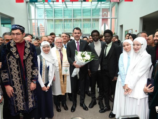 Dünyayı barışa ulaştıracak bilgi ve teknolojinin üretilebileceğinin mesajını gençlere veren Bakan Murat Kurum, “Eğer bir toplumun kalpleri bir ise akılları da hedefleri de bir olur. Ama kalplerimiz ayrı düşmüşse, akıllarımızı hiç kimse birleştiremez. O yüzden evvela ayrı değil bir olacağız, her gün kavga etsek de, her sabah yeniden kardeş olacağız. Kardeşlik tamam olduğunda, ikinci görev geliyor. Pergelin bir ayağını medeniyetimizde sabit tutacağız, diğer ayağı ile insanlığın birikiminde dolaşacağız. Bugün insanlığı krizlere iten bilgi anlayışı karşısında “vicdanı göz ardı etmeyen özgün çözümlerle insanlığa umut olacağız. Bu inancı elden bırakmazsak; kundaklara kan dolduran teknolojinin karşısına dünyayı barışa ulaştıracak bilgi ve teknolojiyi üretebiliriz” diye konuştu.