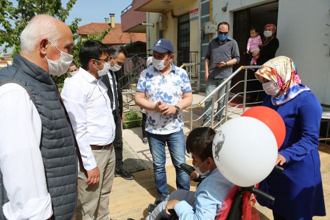Bolu Belediye Başkanı Tanju Özcan hayırsever iş adamı Ahmet Mermer’in gönderdiği 3 akülü sandalyeyi ihtiyaç sahiplerine teslim etti. Akülü araçlarına kavuşan engelli bireylerden bir çocuğun mutluluk gözyaşları herkesi duygulandırdı. Başkan Özcan, hayırseverlere çağrıda bulunarak, “Engelli bireylerimize hep birlikte sahip çıkalım. Biz bu noktada Bolu Belediyesi olarak köprü olmaya hazırız.” dedi.