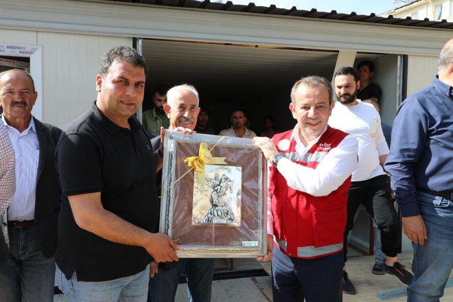 Kahramanmaraş merkezli depremlerde yerle bir olan Adıyaman’ın Gölbaşı ilçesinde yaralar Bolu Belediyesi’nin de destekleriyle sarılmaya devam ediyor. 6 şubatta peş peşe yaşanan iki büyük deprem sonrası tüm imkanlarını seferber eden Bolu Belediyesi, Gölbaşı ilçesine tırlar dolusu temel gıda malzemeleri, temiz su tankları, mutfak tüpleri gönderdi. Ayrıca ilçede altyapısı zarar gören bölgelere de malzeme desteğinde bulundu.Bunlarla da yetinmeyen Bolu Belediyesi, yıkılan Gölbaşı Belediyesi hizmet binasının yapımını da üstlendi. Başkan Özcan’ın talimatıyla yapımına başlanılan bina bitme aşamasına gelirken, Bolu Belediye Başkanı Tanju Özcan’da çalışmaları yerinde görmek ve ilçe halkıyla bir araya gelmek üzere Perşembe günü Adıyaman’ın Gölbaşı ilçesine geldi.