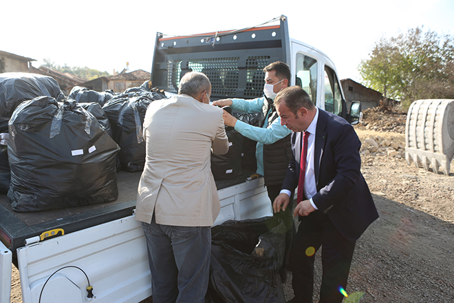 “Biz hem belediye olarak hem de diğer kamu kurumlarımız olarak yangın anında buradaydık ve yaşanan sıkıntıları bizzat gördük. Benim şöyle de bir özelliğim var, benim köyüm buranın hemen karşısında Gövem Köyü ve bizim köyümüzde de 1985 yılında evlerimiz yanmıştı. Dolayısıyla bugün evi yanan vatandaşlarımızın nasıl bir sıkıntı yaşadığını ben geçmişte yaşadığım için iyi biliyorum. Kıyafetleri yandı, eşyaları yandı, bazılarının hayvanları yandı. Dolayısıyla burada neyin eksik olduğunu, en çok neye ihtiyaç olduğunu çok iyi biliyoruz. İlk günlerde Bolu Belediyemizin ekipleri sıcak yemek dahil burada ne ihtiyaç varsa hepsini yaptı. Bizden ne talep edilirse yerine getireceğiz demiştik. Dün muhtarımız kilitli parke taşı lazım dedi ve onu hemen gönderdik. Ayrıca İzmirli bir iş adamı arkadaşımız da dış cepheler için malzeme gönderecek ve bununda ilk tırı hemen gelecek. İnşallah evlerin yapımı esnasında da biz üzerimize düşeni yapacağız. Beton, demir konusunda her türlü desteği vereceğiz. Bugün de yardım malzemesi ile geldik ve bunların bir kısmı yardımseverler bir kısmı da bizim aracılığımızla alındı. Bunları da muhtarımıza teslim etmeye geldik.