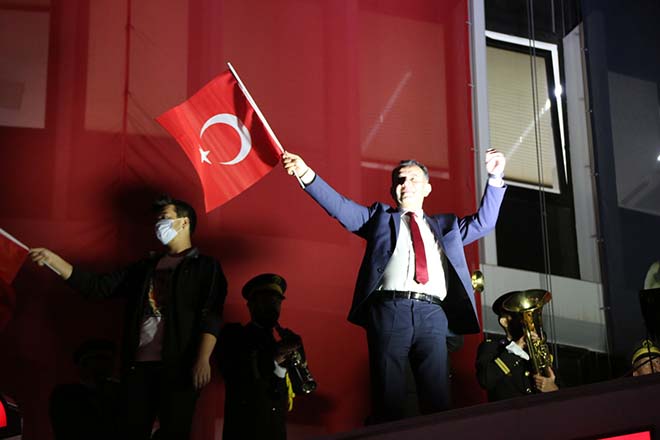 Bolu Belediye Başkanı Tanju Özcan da eşi ve oğluyla birlikte asma kata çıkarak, bayram coşkusunu vatandaşlarla birlikte yaşadı. Saatler 19.23'ü gösterdiğinde ise il genelindeki bütün hoparlörden okunan İstiklal Marşı ile kutlamalar sonlandırıldı.