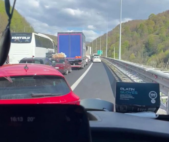 Ramazan Bayramı tatilinde yoğunluğun yaşandığı otoyolun Bolu kesiminde zaman zaman meydana gelen hasarlı veya yaralanmalı trafik kazalarına ulaşmaya çalışan 112 Acil Sağlık ekipleri, duran trafik sebebiyle emniyet şeridini kullanıyor. Cumartesi günü Ankara istikametinde 5 aracın karıştığı zincirleme trafik kazasına ulaşmak isteyen ambulans şoförünün de zor anları kameraya yansıdı. Görüntülere siren çalan ambulans şoförünün emniyet şeridinden geçerken zorlandığı anlar yer aldı.