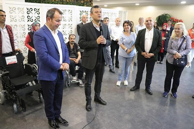 Tebrik çiçeklerinin satılarak elde edilen gelirle ihtiyaç sahiplerine akülü araç alınmasının parlak bir fikir olduğunu söyleyen Grup Başkanvekili Özel, “Tanju Özcan’ın bulunduğu her yerde enerji vardır, akıl vardır, parlak fikir vardır. Bugün de burada örnek bir davranış gördük. Ben çok sayıda çiçek geldiğini bilirim ama bu çiçeklerin ihaleye çıkartalım, satalım bundan da akülü araba alalım gerçekten çok parlak bir fikir. Duyduğumda da bu beni çok mutlu etti. Kendisini tebrik ediyoruz. Türkiye hiç şüphesiz Bolu’dan, Tanju Özcan’dan parlak projeler, parlak fikirler duymaya devam edecek. Her türlü dezavantajlı gruba sahip çıkmak sosyal belediyeciliğin görevi. Bugün engelli dostlarımıza, kardeşlerimize yapılan bu katkıyı da son derece önemsiyoruz.” diye konuştu.