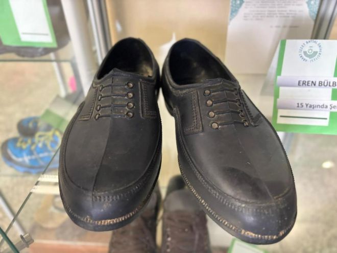 Konuşmasını sürdüren Akçakale, "Aslen Trabzonlu olan, ortaokul ve liseden bir arkadaşım vardı. Bu müze fikrini daha önce onunla paylaşmıştım. Trabzon'dayken bana, 'Rahmetli Eren Bülbül'ün ayakkabısını size bulabilirim' dedi. Arif Bülbül, Eren'in abisi ile tanışıyormuş. Sağ olsun, vefatından bir-bir buçuk ay sonra abisinden ayakkabıları elden teslim alıp bize kargoyla gönderdi. O ayakkabıyı, yani kara lastiği, burada gururla sergiliyoruz. Eren Bülbül, çok çocuklu ve maddi durumu zayıf bir ailenin çocuğuydu. Şehit olduğunda ayağında kara lastik vardı. Bu yüzden biz de ayakkabı yerine genellikle 'Kara lastik' diyoruz. Maddi değeri belki yok ama manevi değeri paha biçilemez. Çünkü buradaki tüm ayakkabılar mutlaka sahipleri tarafından giyilmiş. Birçoğu artık hayatta değil, hayatta olanlar da bir gün aramızdan ayrılacak. Dolayısıyla bana sorarsanız, bu müze değer biçilemeyecek bir hazine" ifadelerini kullandı.