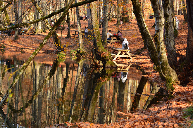 Bolu kent merkezine 44 kilometre uzaklıkta bulunan ve içerisinde barındırdığı Nazlıgöl, Seringöl, Deringöl, Sazlıgöl, Küçükgöl, İncegöl ve Büyükgöl'le her yıl binlerce ziyaretçiyi ağırlayan Yedigöller Milli Parkı’nda, sonbaharın gelmesiyle renk cümbüşü yaşanıyor. İçerisinde bulunan ağaçların, yeşil ve sarının bütün tonlarını sergilediği Yedigöller Milli Parkı’nın havadan görüntüsü eşsiz manzarayı da ortaya çıkarıyor. Fotoğraf tutkunlarının özellikle tercih ettiği Yedigöller’de, ziyaretçiler eşsiz manzara da fotoğraf çektirerek keyifli anlar yaşıyor. Baharın eşsiz deneyimini yaşamak isteyen bazı tatilciler ise, yanlarında getirdikleri çadırlarla mili park içerisinde kamp hayatı da yaşayabiliyor.