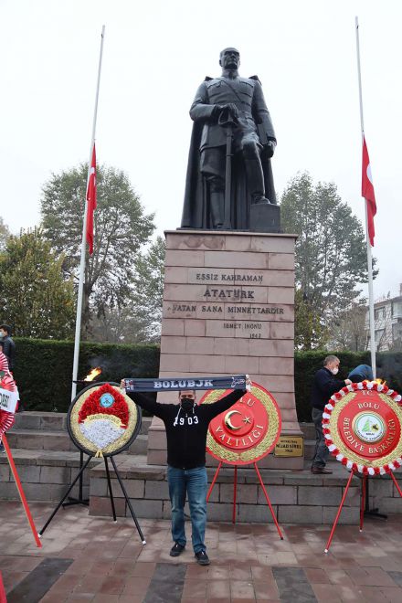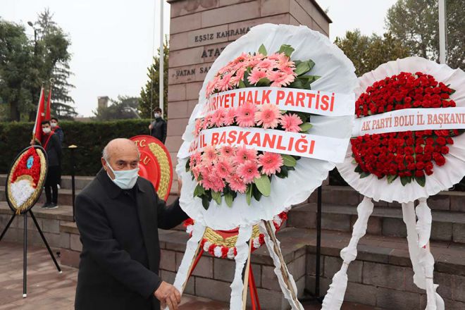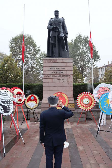 Türkiye Cumhuriyeti kurucusu Mustafa Kemal Atatürk, ölümünün 82’inci yılında Anıt Park'ta tören düzenlendi. Törene, Bolu Valisi Ahmet Ümit, Bolu Belediye Başkanı Tanju Özcan, Siyasi parti temsilcileri, protokol üyeleri ve yüzlerce vatandaş katıldı. Anıt Park'ta bulunan Atatürk Anıtı'na çelenk sunumuyla başlayan tören, saygı duruşu ve istiklal marşının okunmasıyla devam etti. Saatler 09.05'i gösterdiğinde yaya olan vatandaşlarla birlikte trafikte olan sürücüler de araçlarından inerek Ata'ya saygı duruşunda bulundu. Evlerinde olan vatandaşlar ise pencerelerinin önünden ve balkonlarından saygı duruşuna katıldı.
