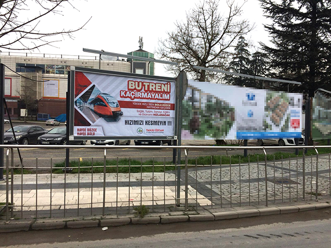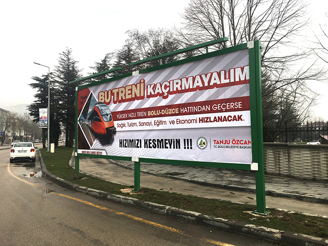Bolulu ve Düzceli yöneticilerin birlikte hareket etmesi halinde birlikten güç doğacağını ve hızlı tren güzergâhının Bolu-Düzce hattı şeklinde yeniden revize edeceğini düşünen Bolu Belediye Başkanı Tanju Özcan, “Bu Treni Kaçırmayalım!” sloganıyla yeni bir kampanya başlatarak, iki şehrin farklı noktalarına astırdığı afişlerle dayanışma çağrısı yaptı. Billboardlara eş zamanlı asılan afişlerde Bolu Belediye Başkanı Tanju Özcan, Yüksek Hızlı Tren (YHT) hattının Düzce-Bolu güzergâhından geçmesi durumunda iki komşu ilde turizm, sağlık, sanayi, eğitim ve ekonominin hızlanacağını vurgulayarak, hızlarının kesilmemesini istedi.