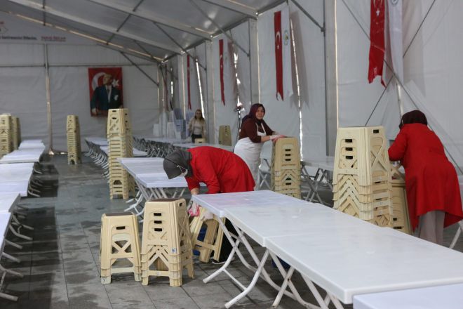 Bolu’da pandemi koşullarının hafiflemesinin ardından kent meydanına iftar çadırı kuruldu. Bolu Belediyesi’nin ve hayırsever vatandaşların katkılarıyla kurulan çadırda Ramazan ayı boyunca her gün bin kişi iftar yapacak.