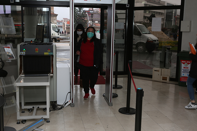 Yeni tip korona virüs salgını tüm Türkiye’de hızla yayılırken, Bolu Belediyesi salgınla mücadele için ilave tedbirler alarak belediye binası girişinde termal kamera koydu.