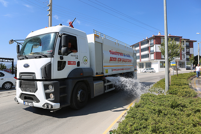 Bolu Belediyesi araç filosuna yeni kazandırdığı 20 tonluk arasöz ile şehir merkezindeki yeşil alanları düzenli olarak suluyor. Hizmet çıtasını günden güne daha da yukarılara taşıyan Bolu Belediyesi, araç filosunu güçlendirmeye devam ediyor. Başkan Özcan’ın girişimleriyle Park ve Bahçeler Müdürlüğü’ne bir adet 20 ton su kapasiteli yeni bir arasöz kazandırıldı. Kısa süre önce teslim alınan arasöz bugün itibariyle kullanılmaya başlandı. Bolu Belediyesi Park ve Bahçeler Müdürlüğü ekipleri, daha yeşil bir Bolu için yeni arasöz ile şehir merkezindeki park, dönel kavşak içi ve orta refüj gibi yeşil alanları sulayıp, ulaşım ağındaki yolları yıkıyor.