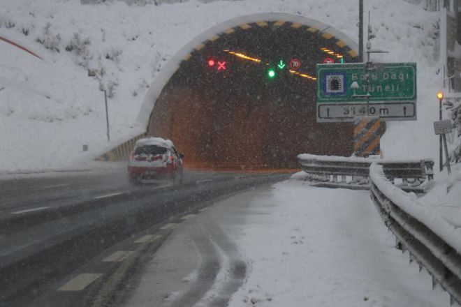 Kar yağışının etkili olduğu D-100 karayolu ve TEM Otoyolu Bolu Dağı geçişinde Karayolları ekipleri kar küreme ve tuzlama çalışmalarını sürdürüyor. Sürücüler polis ekipleri ve ışıklı levhalarla hız yapmamaları ve takip mesafelerini korumaları yönünde uyarılıyor.