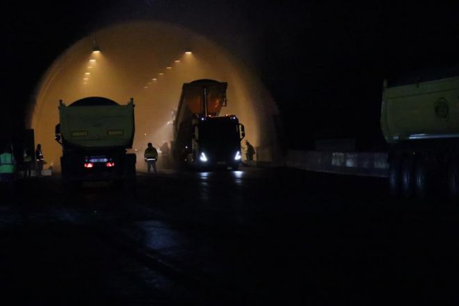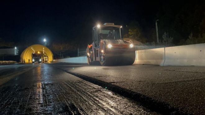 Anadolu Otoyolu’nun Bolu Dağı Tüneli’nin İstanbul istikameti 31 Temmuz’da trafiğe kapatıldı. İstanbul yönündeki tüpünün uzatılması çalışmaları nedeniyle yol 37 gündür trafiğe kapalı. Tünelin 67 metre uzatılması ve iki viyadükte 4 adet genleşme derzinin değiştirilmesi çalışmaları büyük ölçüde tamamlandı. İstanbul yönüne gitmek isteyen sürücüler 37 gün boyunca Abant gişelerinden çıkarak D-100 kara yolunu kullandı. Kilometrelerce araç kuyruğunun oluştuğu D-100 Bolu Dağı geçişinde oluşan trafik çilesini bitirmek için ekiplerin hummalı çalışmaları sürüyor. Tünel portallarının uzatma çalışmalarını tamamlayan ekipler, asfalt serimi yaptı. TGRT Haber’e canlı yayın konuğu olan Ulaştırma ve Altyapı Bakanı Abdulkadir Uraloğlu, yolun yarın saatlerinde trafiğe açılacağına duyurdu.