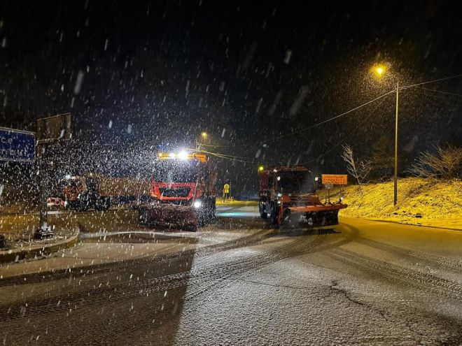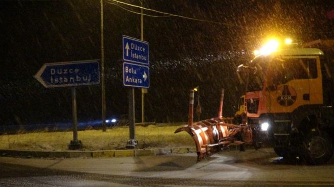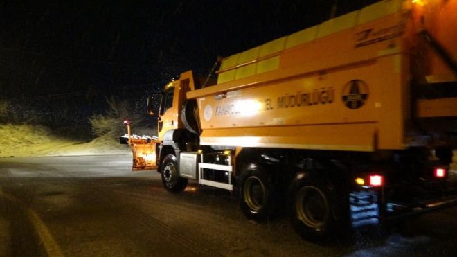 Karayolları ekipleri kar yağışının yolu kapatmaması için çalışmalarını sürdürüyor. Bölgede sabah saatlerine kadar kar yağışı bekleniyor. Öte yandan, kar yağışı nedeniyle ulaşımda herhangi bir aksama yaşanmadı