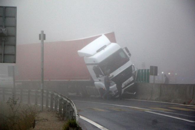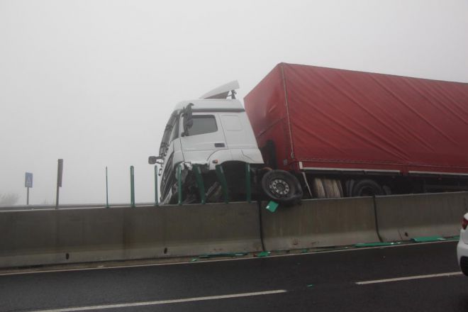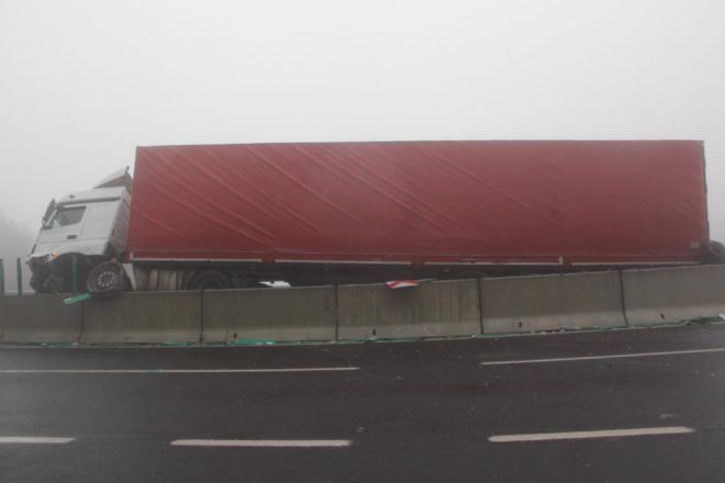 Kaza, saat 10.30 sıralarında D-100 karayolu Bolu Dağı geçişinin Karanlıkdere mevkiinde meydana geldi. Edinilen bilgiye göre, İstanbul istikametine seyir halinde olan Lütfi Mercimek idaresindeki 31 AAZ 75 tır, görüş mesafesi 20 metreye kadar düşen yolda kontrolden çıkarak refüjde bulunan beton bariyerlerin üzerine çıktı. Kazada sürücü yara almadan kurtulurken yaklaşık 1 metrelik beton bariyerin üzerine çıkan tır asılı şekilde kaldı. Kaza yapan tırın bulunduğu yerden kaldırılması için çalışma başlatılırken, ulaşım tek şeritten kontrollü şekilde sağlandı.