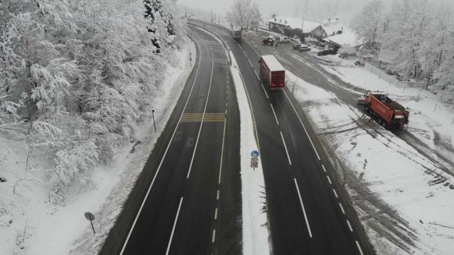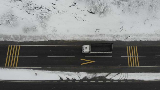Bolu Dağı Beyaz gelinliğini giydi. Avrupa’yı Anadolu’ya bağlayan Bolu Dağında dün akşam saatlerinde başlayan ara ara hafif şekilde yağan kar beyaz görüntü oluşturdu. Drone ile havadan çekilen görüntüler muhteşem manzara oluşturdu. Hafif kar yağışı ve sisin etkili olduğu Bolu Dağında Karayolları ekipleri de zaman zaman tuzlama çalışması yapıyor.