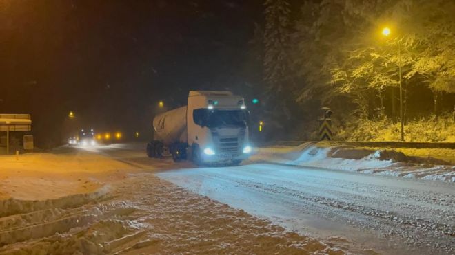 Bolu’da, sabah saatlerinde başlayan kar yağışı yüksek kesimlerde etkili oldu. Anadolu Otoyolu Bolu Dağı Tüneli ve D-100 karayolu Bolu Dağı kesimi Yumrukaya, Abant Kavşağı, Elmalık, Bakacak, Seymenler, Karanlıkdere, Bıçkıyanı, Sarıçökek bölgesinde devam eden kar yağışı sürücülere zor anlar yaşatıyor. Yoğun kar yağışı nedeniyle bölgede görüş mesafesi yer yer 40 metreye kadar düştü. Karayolları ekipleri Bolu Dağı güzergahında kar küreme ve tuzlama çalışmalarını sürdürüyor. Sürücüler takip mesafelerini korumaları ve hız yapmamaları konusunda ışıklı tabelalar ve polis ekipleri tarafından uyarılıyor.Yoğun kar yağışı nedeniyle kar kalınlığı 30 santimetreye yaklaştı.
