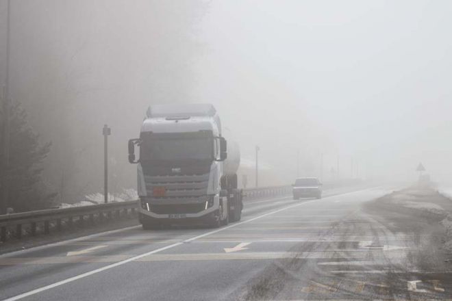 Bolu’da, sabah saatlerinden itibaren etkili olan yoğun sis sürücülere zor anlar yaşattı. Sis nedeniyle görüş mesafesinin yer yer 20 metreye kadar düştüğü D-100 Karayolu Bolu Dağı kesimi ve Yumrukaya, Abant Kavşağı, Elmalık, Bakacak, Seymenler, Karanlıkdere, Bıçkıyanı, Sarıçökek mevkiileri havadan görüntülendi. Yoğun sisin etkili olduğu güzergahlarda sürücüler ışıklı tabelalar ve polis ekipleri tarafından hız yapmamaları ve takip mesafelerini korumaları yönünde uyarıldı. Öte yandan, yoğun sis kent merkezinde de etkili oldu.